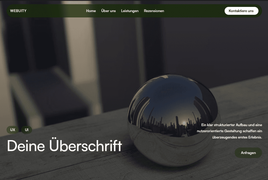 Kompakt & wirkungsstark. Ein reduzierter Aufbau, kombiniert mit einem markanten visuellen Element. Alles ist darauf ausgelegt, die Hauptaussage klar und modern zu vermitteln.