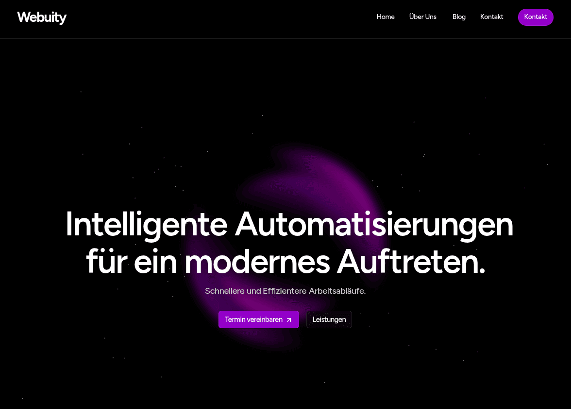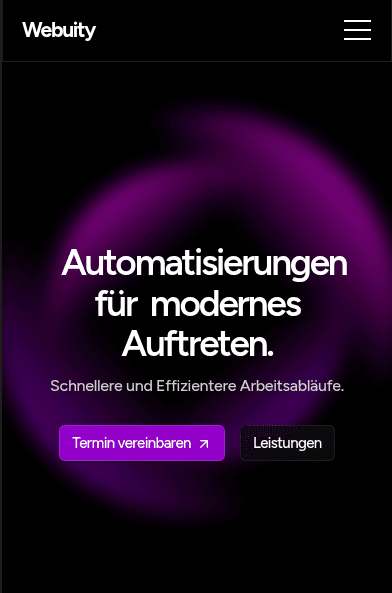 Eine individuell modern gestaltete Website mit klarer Struktur und nahtlos integrierter Terminbuchungsautomatisierung. Nutzer können rund um die Uhr Termine vereinbaren, während das System im Hintergrund effizient alles verwaltet.